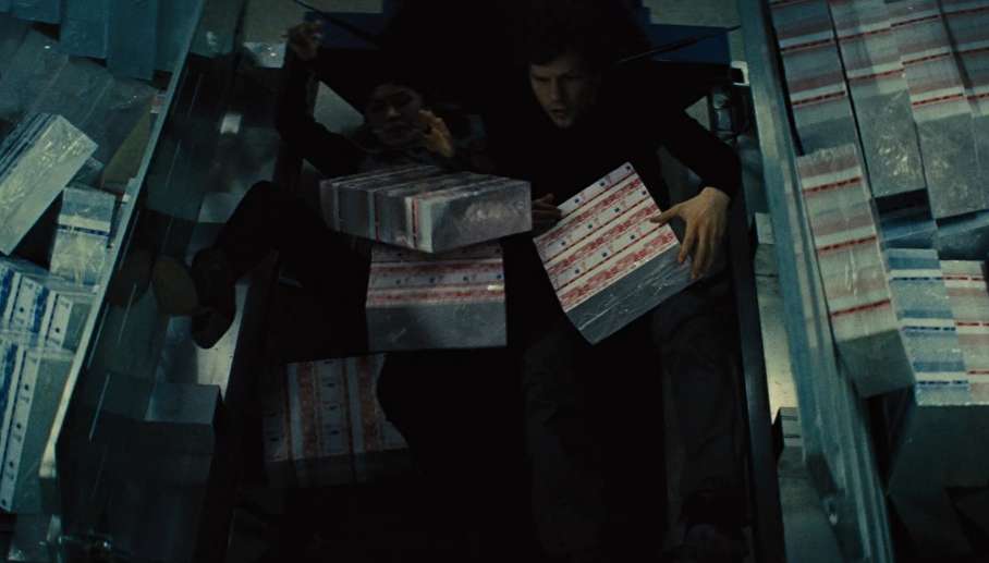 - Вращающийся коридор и перелом пальца. Вращающийся коридор для сцены драки поворачивался на 360 градусов. Джесси Айзенберг сломал палец, ударившись о декорацию. По его словам, это была самая впечатляющая и одновременно самая «враждебная» к нему съёмочная площадка.